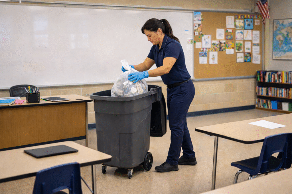 Proper waste removal is essential to maintaining clean, functional classrooms. NSC handles daily trash collection and liner replacement with attention to detail.